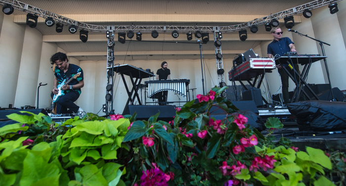 LA electronic duo CLASSIXX was the first group to perform on the Petrillo Bandshell on Sunday afternoon, hitting the early-risers with a dynamic hour-long set highlighting material from the band’s two full-length LPs. In recent years the two remix masters have delved into their own material, which, like Disclosure the evening before, has been heavily reliant on vocal collaborators. Many of their tracks that have featured artists were played live with the vocal tracks playing over their live performance of the arrangements (“Safe Inside,” “In These Fine Times,” “Whatever I Want”), though a few of their collaborators made appearances at the festival, including How To Dress Well for “Just Let Go,” Holy Ghost!’s Alex Frankel for “I Feel Numb,” and LCD Soundsystem’s Nancy Whang for set-closer “All You’re Waiting For.” CLASSIXX eased in with the opening track off recent LP Faraway Reach, “Grecian Summer,” before blasting into earlier tracks “I’ll Get You” and “Rhythm Santa Clara.” The atmosphere of the set was as bright and sunny as the weather, urging the colorful attendees to move and sweat as if the party from the night before had never ended. Perhaps the most intriguing element of the band’s Sunday set was the live vibraphonist situated just behind the two key members, skillfully banging away on the arranged metal tubes, giving the whole set an ethereal feeling while still managing to be tirelessly buoyant and bubbly.