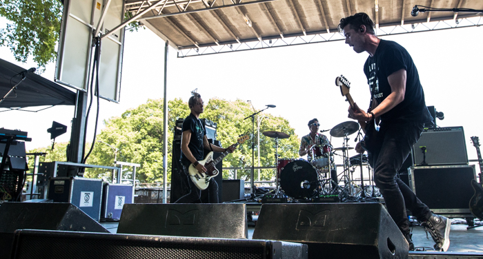 Mid-afternoon, over at the BMI Stage, the members of indie pop band DREAMERS were giving fans a taste of their soon-to-be released debut LP This Album Does Not Exist (due out August 26 via Fairfax Recordings). Members Nick Wold (vocals/guitar), Nelson (bass/vocals), and Jacob Wick (drums) formed the band in Brooklyn, but the trio has since moved to Los Angeles, where they recorded the album. DREAMERS just so happened to be taking over the Best New Bands Twitter account on Sunday, so I was especially excited to see these guys perform. I wasn’t alone. The green was filled with enthusiastic fans, who sang along to songs like “Sweet Disaster” and “Cry Out for Me.” You would never have guessed the band had a late night opening for Third Eye Blind the night before, after witnessing DREAMERS’ fierce afternoon performance. Given the love the trio received and the talent bouncing off the stage, it’s safe to say we’ll be seeing and hearing quite a bit more of DREAMERS! (SH)