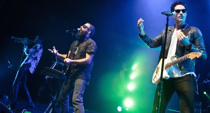 When Capital Cities played “Safe and Sound,” the room went wild! (Video courtesy of Evergig – see below.) There was not a single person in their seats up to the balcony. Afterwards, the band left the stage. People screamed, whistled, and cheered for what seemed like ages. When they finally came back out for an encore, they were bathed in darkness and stood in silence for a minute until they finally spoke: “Hello, hello! Oh stop it! Chicago this is amazing for us. This is amazing! What a beautiful evening and a beautiful theater! Now that we’re warmed up, are you warmed up?” Fans screamed, “Yeah!” Merchant said, “Then show me what you got!” Light burst from the stage, marking the start of an epic encore. The guys sang “Farrah Fawcett Hair.” People danced in the aisles and around the bars. One drunk guy got up on the back bar and danced to the bartender’s dismay.