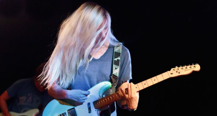 Chicago duo Burndoubt opened the night with their mix of punk and garage rock. Kids bopped their heads to “Get Away.” Singer and guitarist Griffen Emmet bashfully walked up to the mic and said, “This next song is a new song off our recently released self-titled three-song thingy.” The audience laughed along with him. Then he asked that we all “check that out on the internet” before breaking into “Love Song” with drummer Evan Casani. These two seem to be following in the footsteps of The Orwells and Twin Peaks, so perhaps they’ll soon be the next “big thing” to come out of the Windy City?