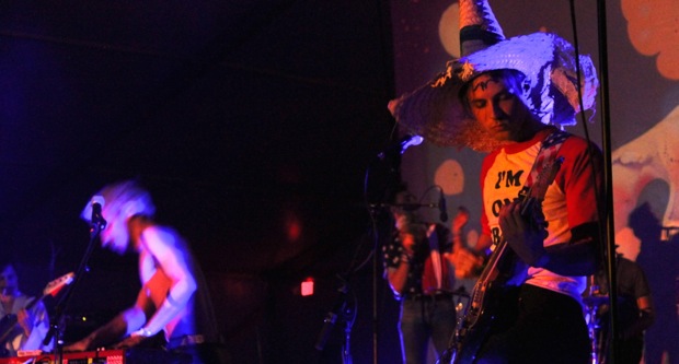 There has been much talk of French band, La Femme but Psych Fest was my first interaction with the Biarritz rockers. I wondered earlier who the odd gang that looked like they’d stepped out of one of Warhol’s homoerotic films was. Keyboard player Sacha Got was clad in leather pants that said “Badass” across the, well, ass, and guitar player, Marlon Mangee was wearing a sombrero to match his shirt that read, “I’m on Drugs.”