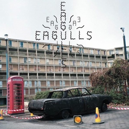 Nashville – Hailing from Leeds, England, The Eagulls are made up of five members: Mark Goldsworthy (guitar), Henry Ruddel (drums), Liam Matthews (bass), Tom Kelly (guitar) and George Mitchell (vocals). Even if you weren’t positive where this band originated, the album cover should give it away: at first glance it appears to be just a black car parked in front of an old motel with one of the famous red telephone booths that England is known for beside it. It seems almost as if it is a straightforward, no-nonsense album cover; but after giving it a second look, I was somewhat surprised to notice a rather large detail that I had missed in the overall photo before. The vehicle is burnt through and through: what remains is the charcoaled skeleton of the car. Caution cones and tape are surrounding the car in a lackadaisical way, as if this crime scene was abandoned before the police could solve the case.