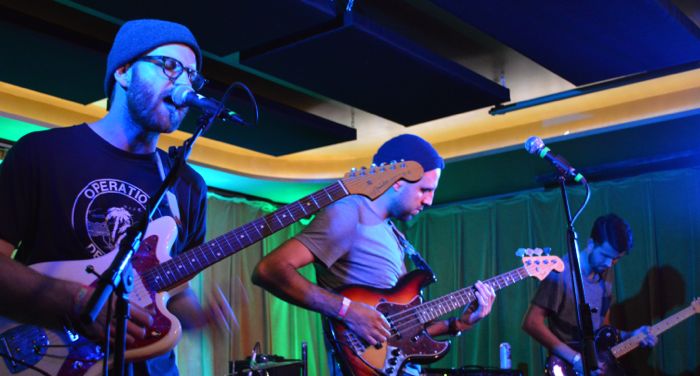 The slower drive of “You and I,” the first track off their album, showcased Cantino’s echoing vocals, complemented by strong guitar reverb and a grooving bass line. Transitioning with a hearty “1-2-3-4” drumstick count-off, Francisco the Man launched into “In the Corners,” the album’s standout track. Ortega’s solid rhythms backed Cantino’s attack on the lyrics with a poppy grit, and surf-y keys enhanced the melody. Its lyrics are at once poetic and authentic: “Frozen in the water of my mind…Throwing out the foxes of regret…I close my eyes and all is quiet/ And in the world she disappears/ And I look for another beer.” A strong reverb fadeout transitioned into “Big Ideas,” with more great bass, pounding drums, and distortion, culminating in an impressively synchronized ending.