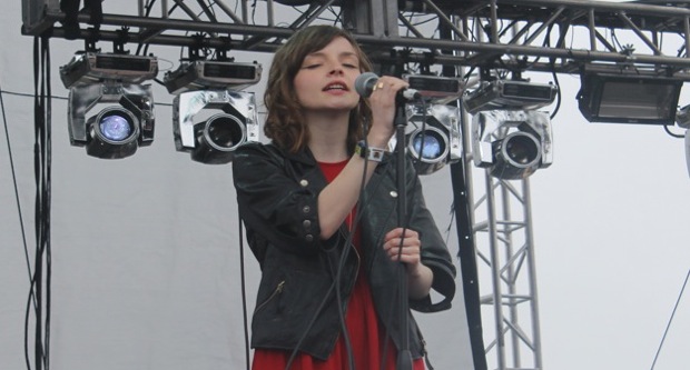 Even with the rain pouring down on the sizeable Monday afternoon crowd at the Honda Bigfoot Stage, CHVRCHES seemed unfazed. After stepping onstage and graciously thanking the crowd, the UK triplet couldn’t help but compare the rain and green hills to their native land. “There’s fucking Scotland right over there,” said vocalist and keyboard player Martin Doherty, laughing. By the time CHVRCHES started playing “Recover,” the undeniable single of their recent EP, the rain was coming down even harder. However, the audience—now decked out in all manner of raingear and protective clothing—were dancing like it was the sunniest day of the festival.